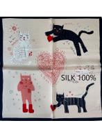 【片面スカーフ】シルク100% 53cm 猫柄ハート